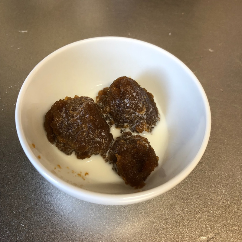 ダマになりにくく、溶けやすいとろみの精を使ってデザートを作ってみました。同封されていた用紙にわらび餅やゼリーが載っていたので参考に今回はコーヒーと混ぜてコーヒーゼリーに挑戦しました!砂糖ととろみの精を入れた後コーヒーを入れてかき混ぜるだけで簡単に出来ます。あとは形を整えてお皿に移して冷やしてから牛乳をかけました。不器用な私でも簡単に作ることができましたし、工程も難しくなく火を使わないのでお子様でも作ることができると思います。味の感想は口の中に入れた時はもちもちと弾力を感じますが、味はしっかりコーヒーゼリーで徐々に口の中で溶けていく不思議な食感でした!美味しかったので今度はカップに入れて市販のコーヒーゼリーを意識して作ってみようと思います☆よかったら試してみてください!