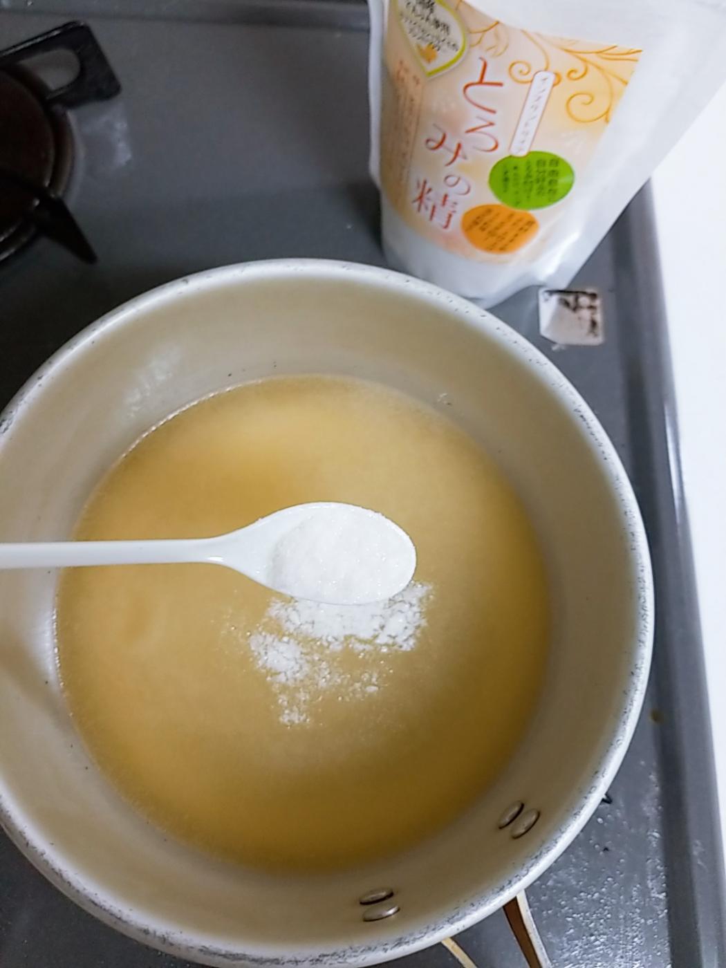 こちらの「とろみの精」を試させていただきました。片栗粉と同じような感覚で使っていますが、温かい料理を作るときにも水溶きが不要なので、他の器が汚れることもなく、さっと振りかけられる便利な商品です。