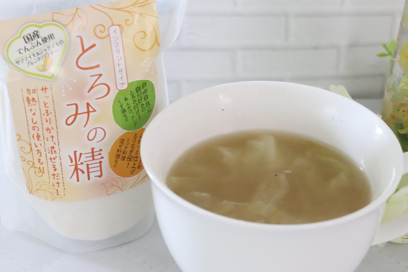 スープにとろみの精を入れて混ぜるだけなんです
