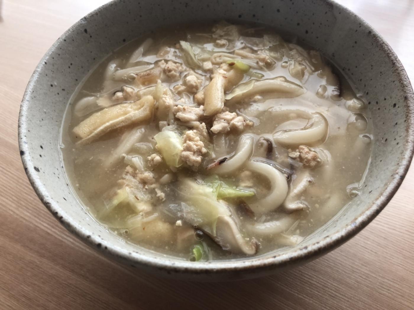 冷凍しておいたお野菜やきのこ類、お揚げなどを入れると栄養も摂れる♪