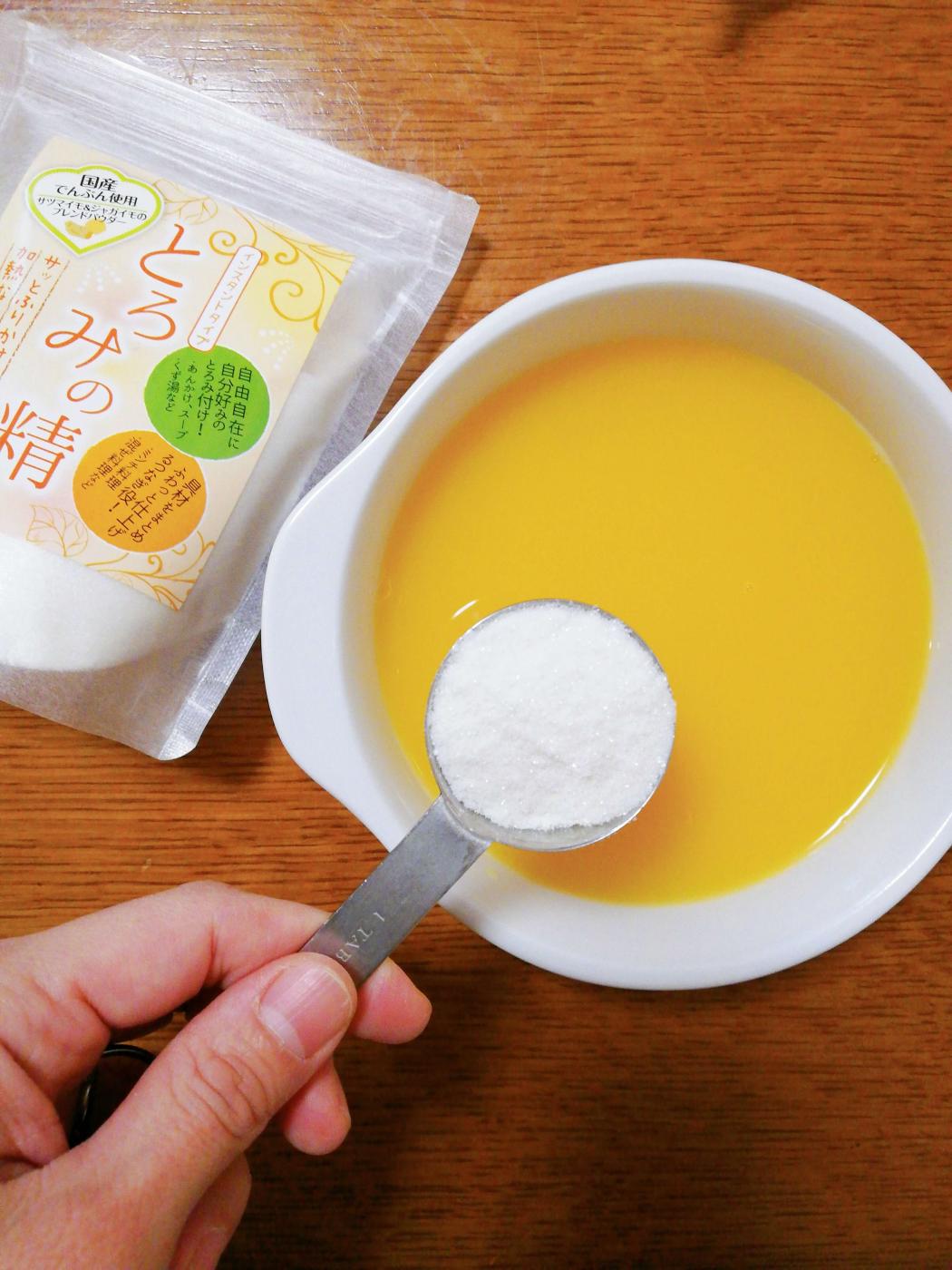 簡単にお料理にとろみがつけられる【とろみの精】という便利な商品をお試しさせていただきました♪ 麻...