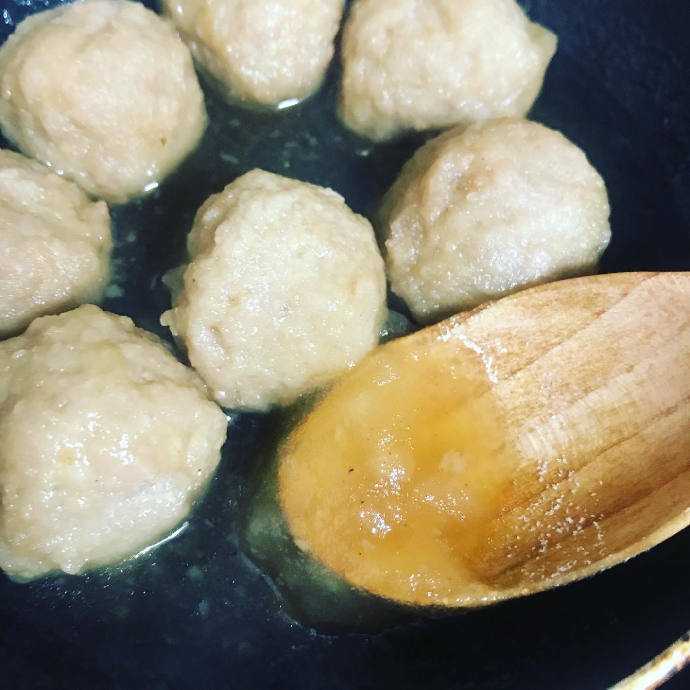 お弁当から汁気を減らしたいので、肉団子にとろみ餡を絡ませることにしました。