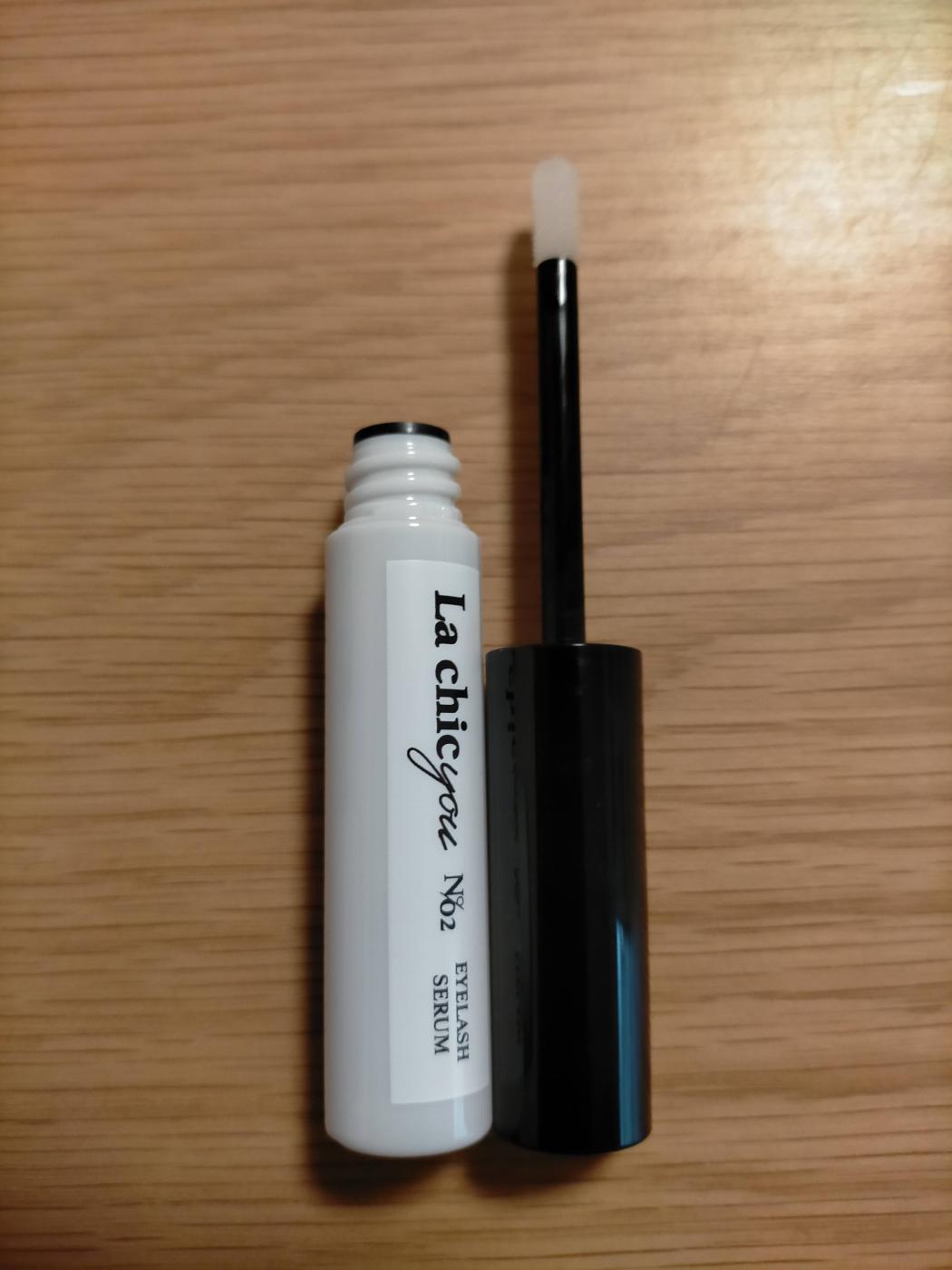 La chicyouのアイラッシュ セラムのレビューです。 ホワイトとブラックのスッキリしたデザインのまつ毛...