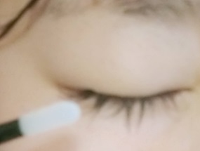朝は、洗顔後の清潔な状態で、リキッドアイライナーを塗るように上下まつ⽑の根元を、マスカラを塗るように上下まつ⽑に塗る。