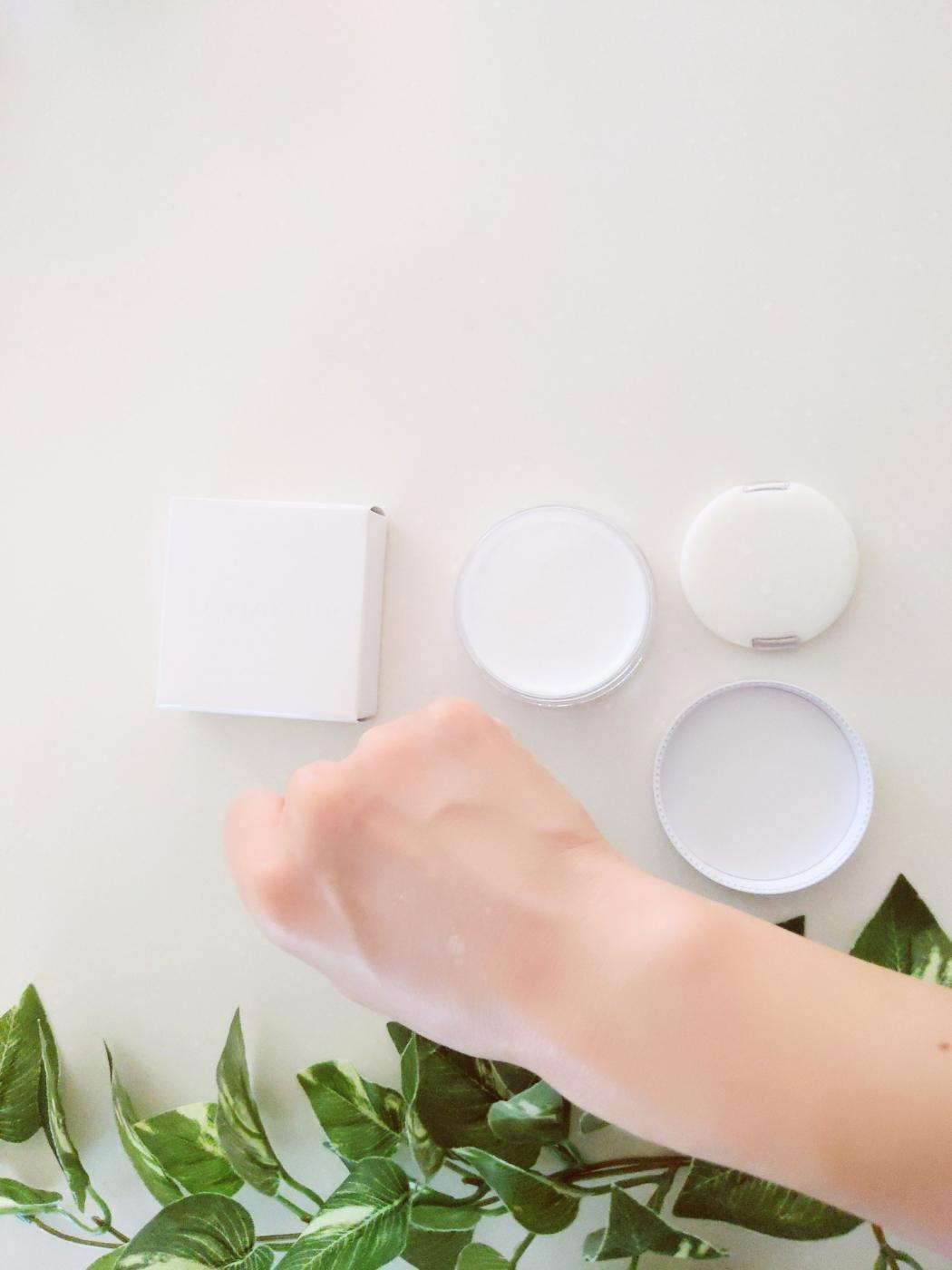 白色のパウダーでつけ心地は軽め✨