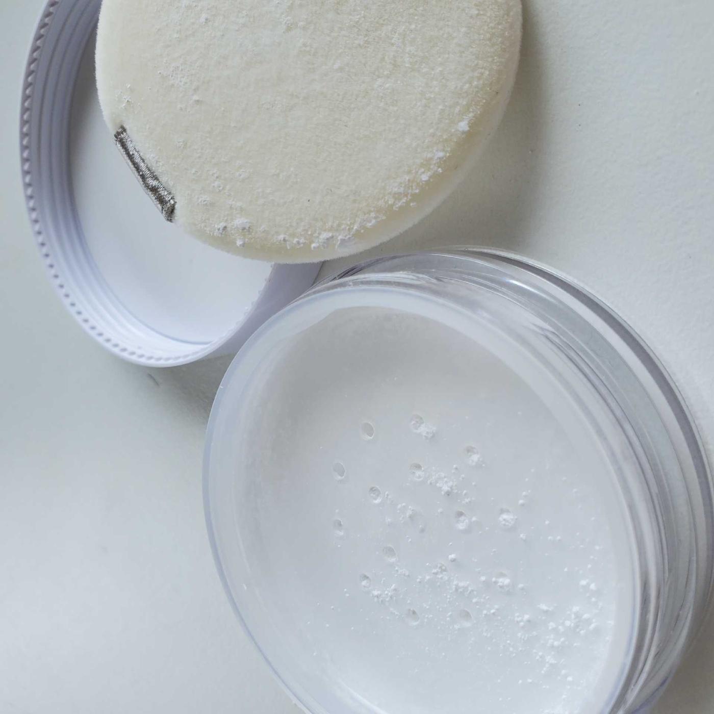 透明なサラサラなパウダーで、肌に白く粉残りしないのがとても使いやすいです。