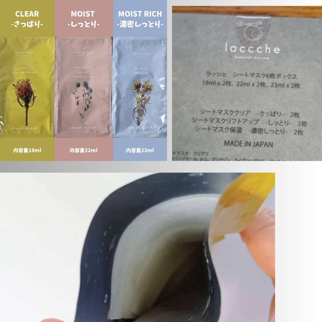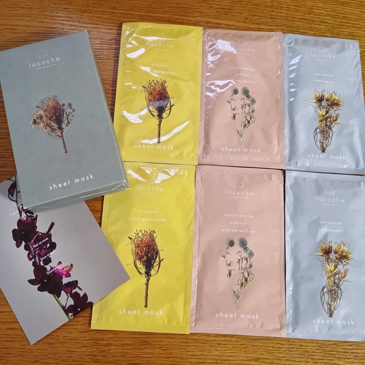 今回使ったのは、3種類のシートマスクがそれぞれ2枚ずつ入ったlaccche(ラッシェ)ボックス♡