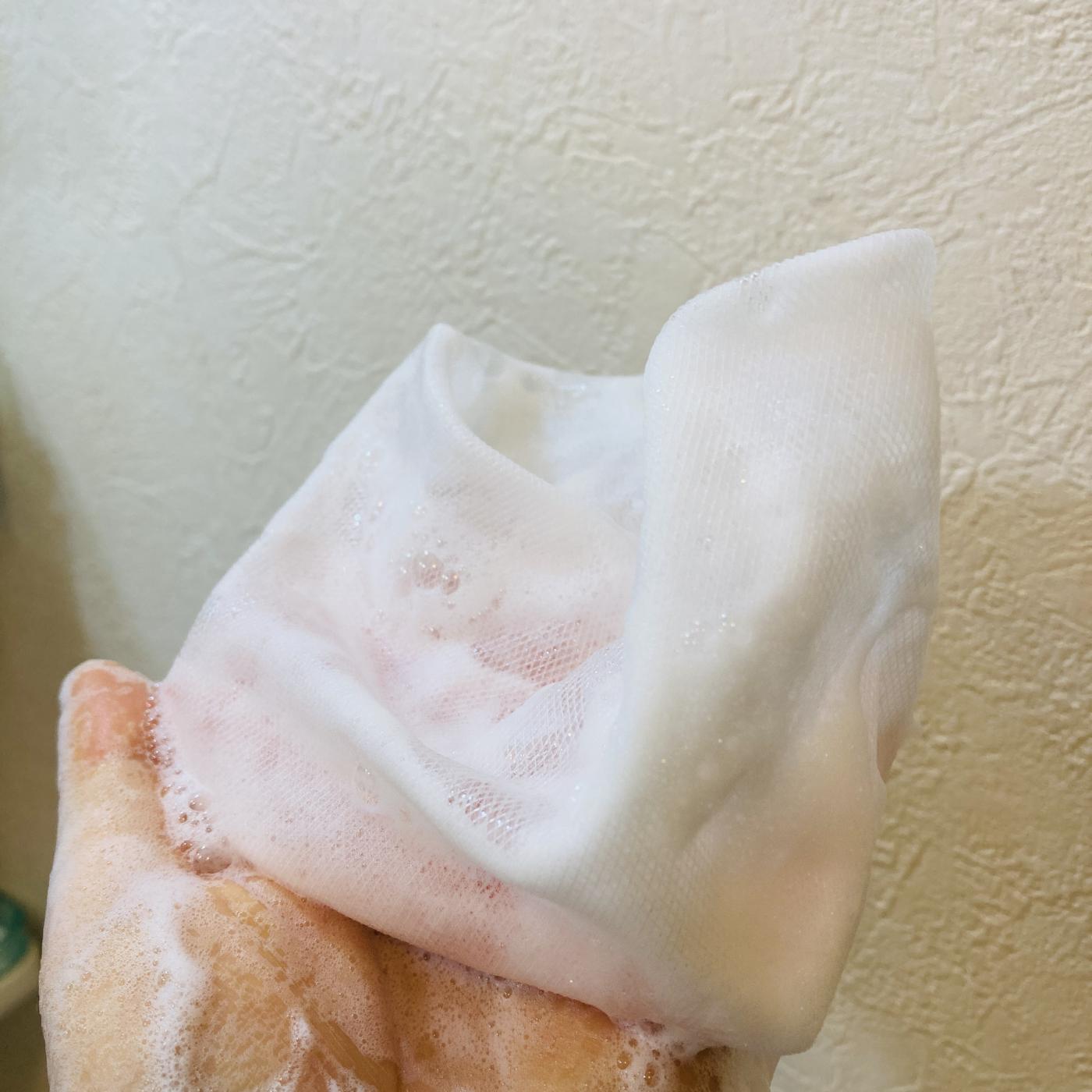 使用感はといいますと、泡立ちはきめ細かくて、ネットを使うと少量でもたっぷり、もっちりとした濃密泡になりますね。お肌をこすらず、泡をふわっと転がすだけで汚れが落ちていく感覚が心地よいです。洗い上がりは「さっぱりなのに、でもつっぱらない」という絶妙なバランスの良さですね。よけいな皮脂はしっかり落ちるのに、気になる頬や口まわりがかさかさにならないのが好印象でした。