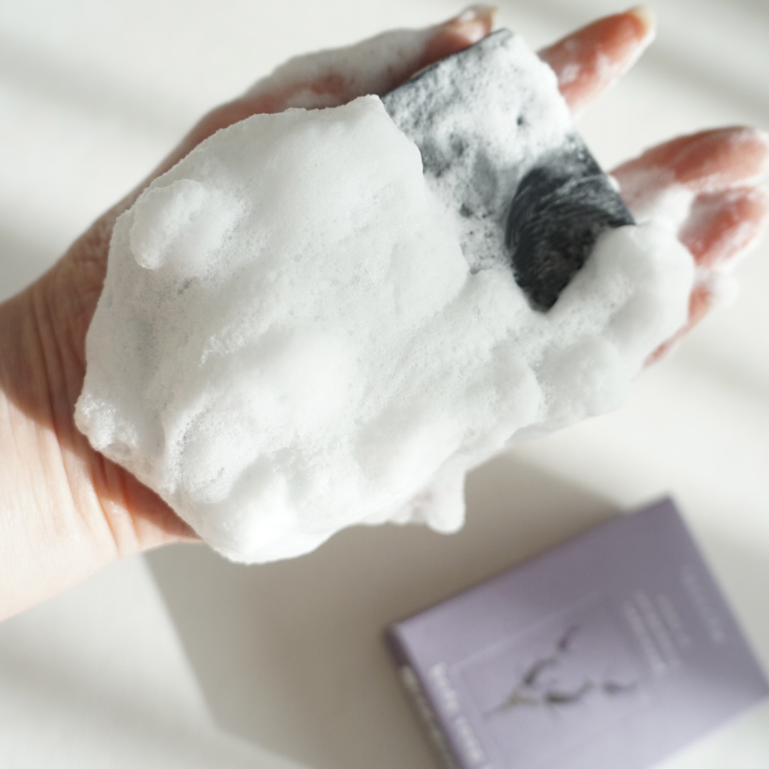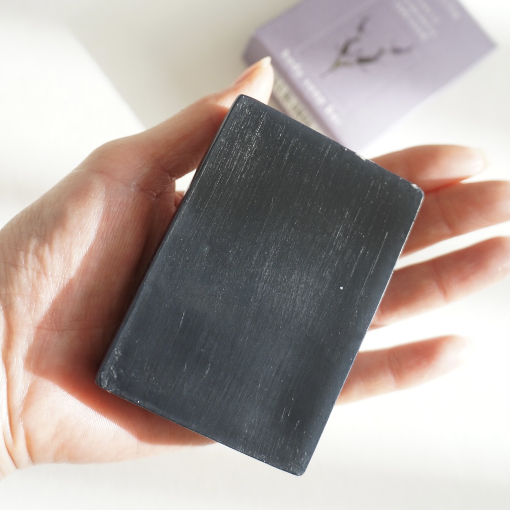 印象に残る真っ黒な石けんは、特別感、存在感があります。