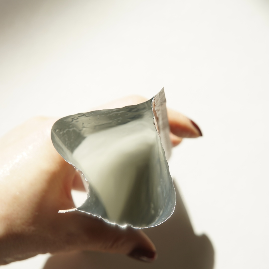 シートは薄めでとても柔らかく、肌にのせた瞬間ぴたっと密着。ベタつかないのに美容液がひたひたで、じんわりとうるおいに包まれる感覚が◎