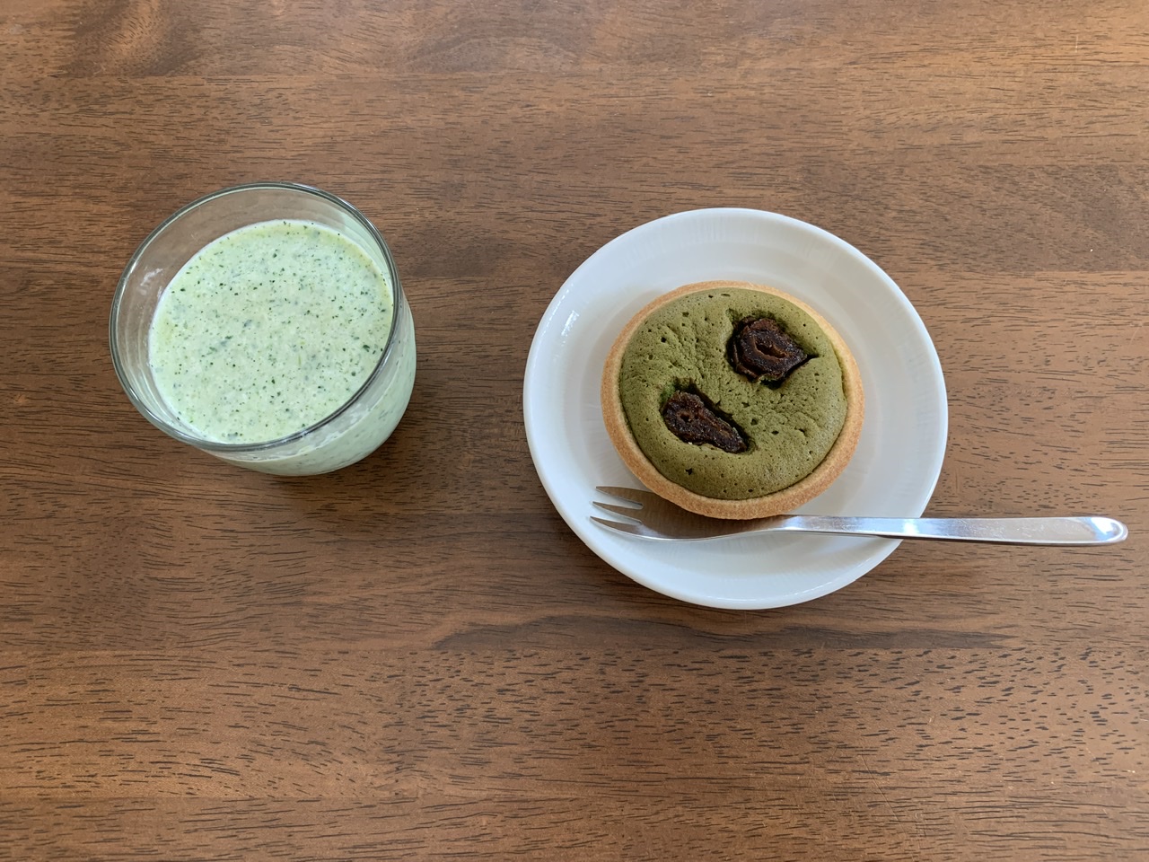 デーツって、何年か前から話題ではありますが、遊牧民の栄養源として親しまれている果実で、食物繊維やカリウムが豊富だそうです。ドラフルーツの半生な食感と、コク深い甘みのある味が、浮くことなく意外にも抹茶やタルトとマッチしています。