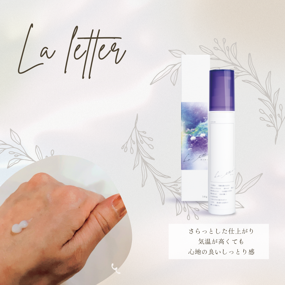 「La Letter(ラレター)」シリーズのコンセプトは、スキンケアを自分への“手紙”として捉えるという、ユニークで心温まるものですね。特にラレタークリームは、セラミドやヒト遺伝子組換ペプチドなどの贅沢な成分を配合し、エイジングケアや保湿にアプローチしているのが特徴です。