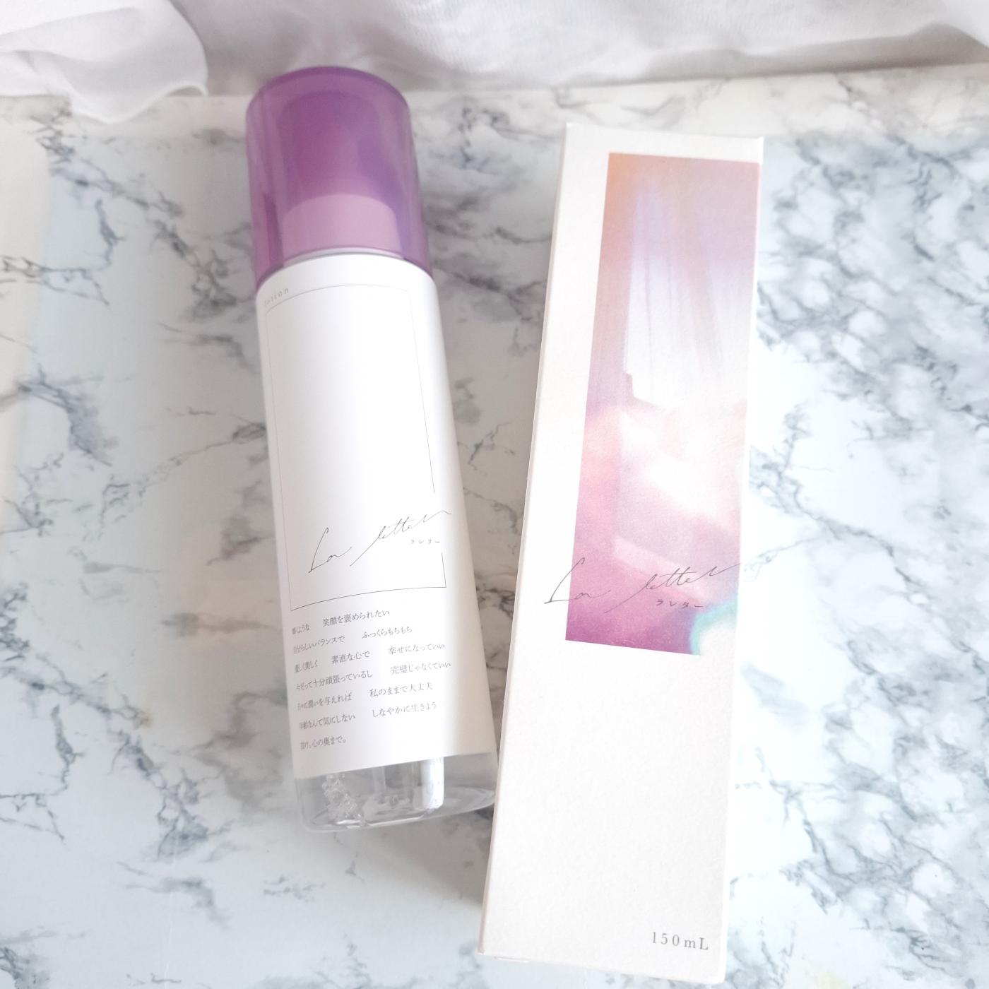 今回は、コエタスのモニターキャンペーンで頂きました、ラレターローションのご紹介です!シンプルながらオシャレなパッケージのこちらは、ラレターローション✨化粧水です!パッケージの下の方にいろいろ文章書いてあります!輝くような笑顔を褒められたい 完璧じゃなくていい、 幸せになっていいなどなんだか見ていて元気になります☺️化粧水が出てくるところは、プッシュタイプになっています! ここからぷしゅっと化粧水が出てくるのですが、けっこうさらさら水っぽいテクスチャーなので、手でしっかり受け止めてあげてください!