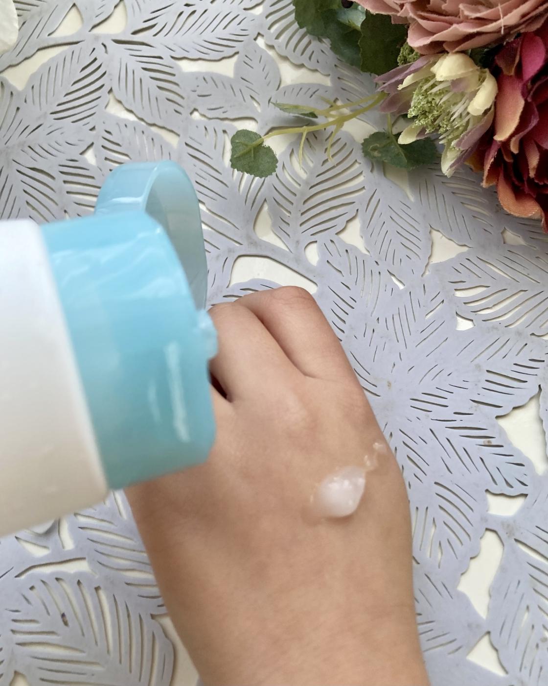 使ってみるとぷるぷるとした乳白色のジェルで、よく伸びて肌なじみもいい💕