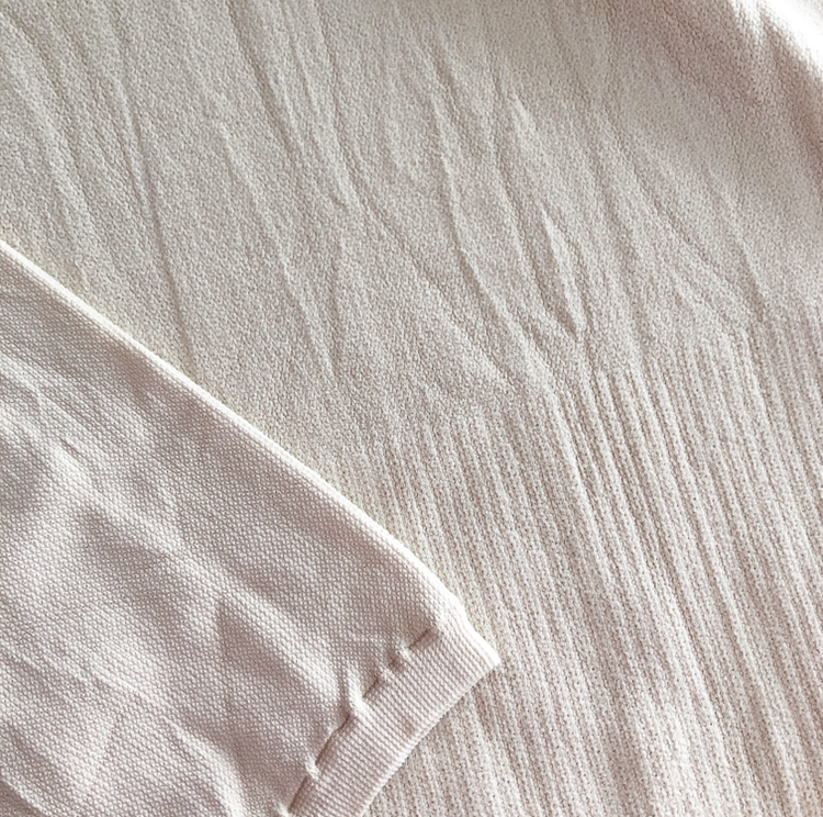 二の腕やお腹、背中など特に冷えを感じやすい部分にパイル風編地を使用。鎖骨に沿うようにデザインされた襟ぐり。上に着るものの邪魔にならないシンプルなカットです生地の継ぎ目がないストレスフリー仕上げ。