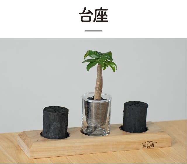 炭の樹を飾る際に、スタイリッシュに魅せる「台座セット」もあります。