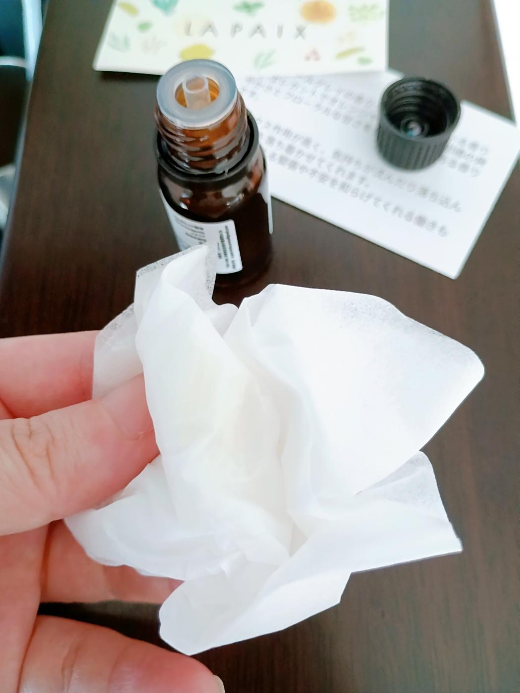 ティッシュにアロマオイルを垂らし、サランラップの上に置く!!