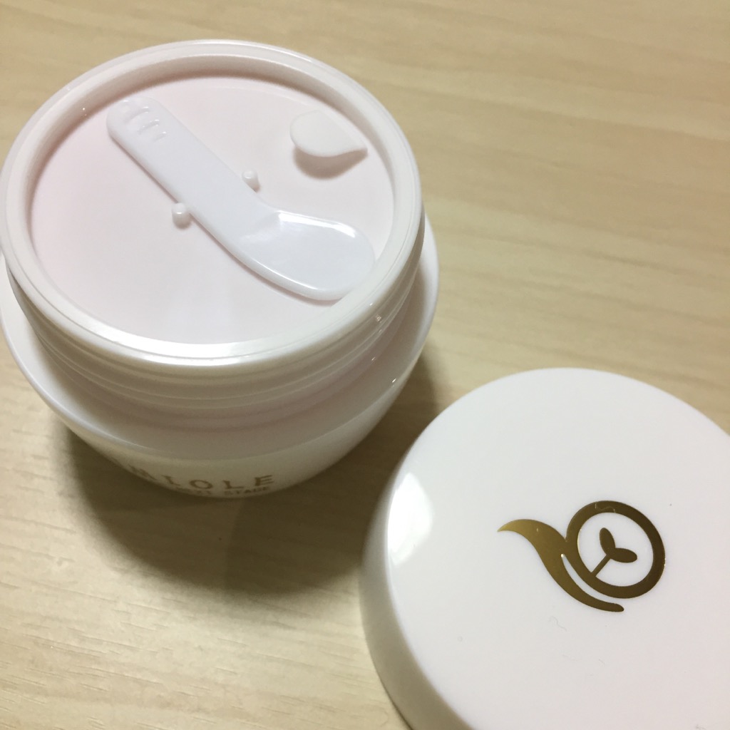 可愛らしい箱の中にシンプルな白い容器が。ふたをあけるとスパチュラがついてます。スパチュラつきだと...