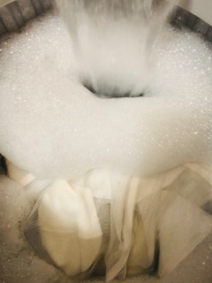 私の洗濯機は筒状タイプなのでお水を入れながら洗剤を入れて洗ってみました。