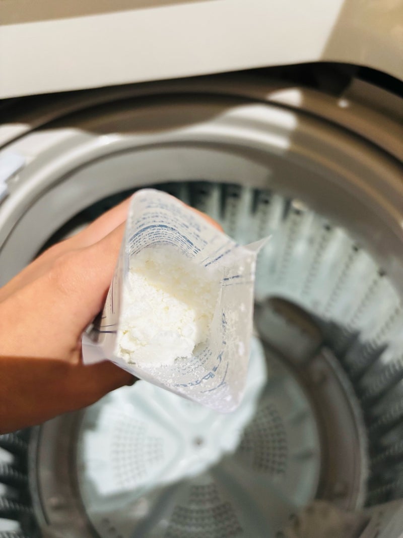 けっこうしっとりした感じの粉洗剤だったので、溶け残りがあるのでは??と不安に思ったのですが、水でもよく溶けてくれるので溶け残りなしでした◎