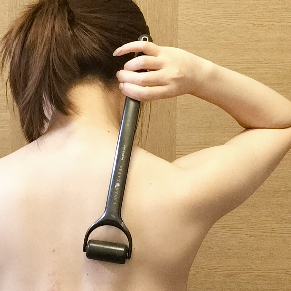 こちらの富士溶岩ボディスキンローラーは、背中や肩甲骨周り、首や肩、デコルテなどを手軽にケアできるアイテムです。