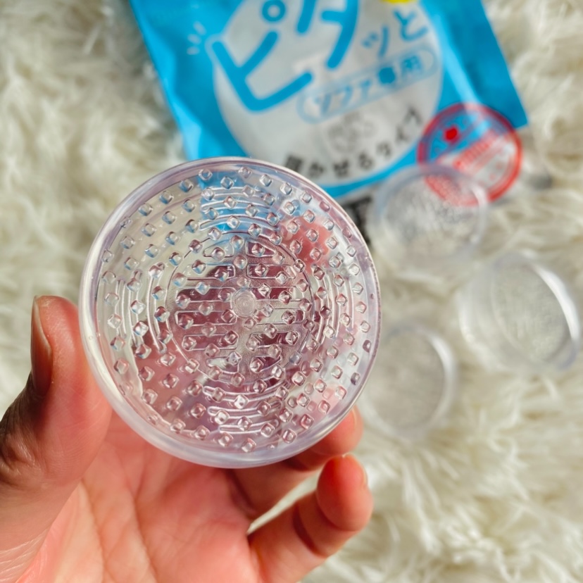 見た目は透明なカップのよう、下部に少し粒々があり滑り止めになっています。今回使用したのはMサイズですが、ソファーのあしの太さによってサイズが選べるようで