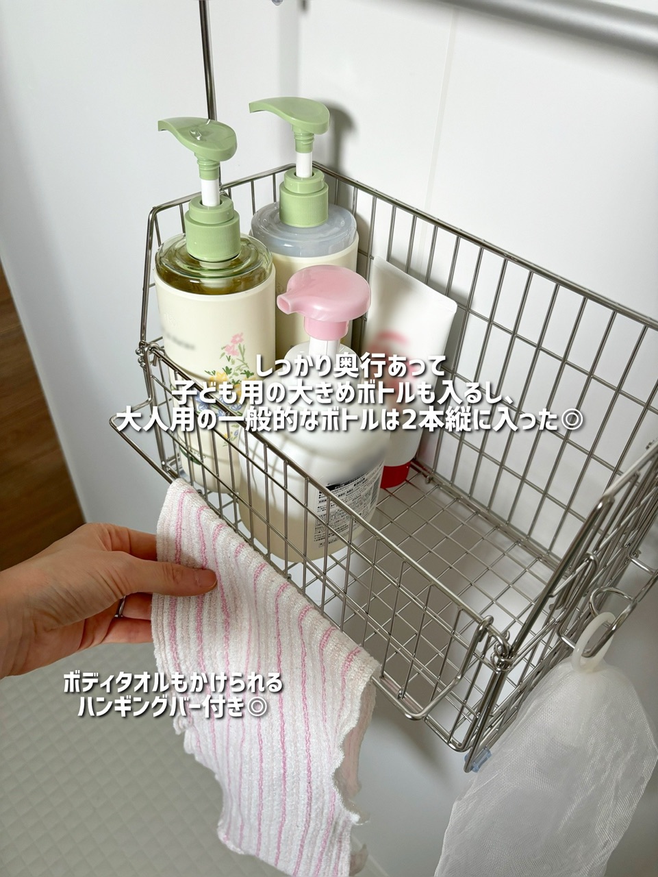 吊り下げるだけで浴室スッキリ!Ouchi+Design収納バスケットを使ってみた