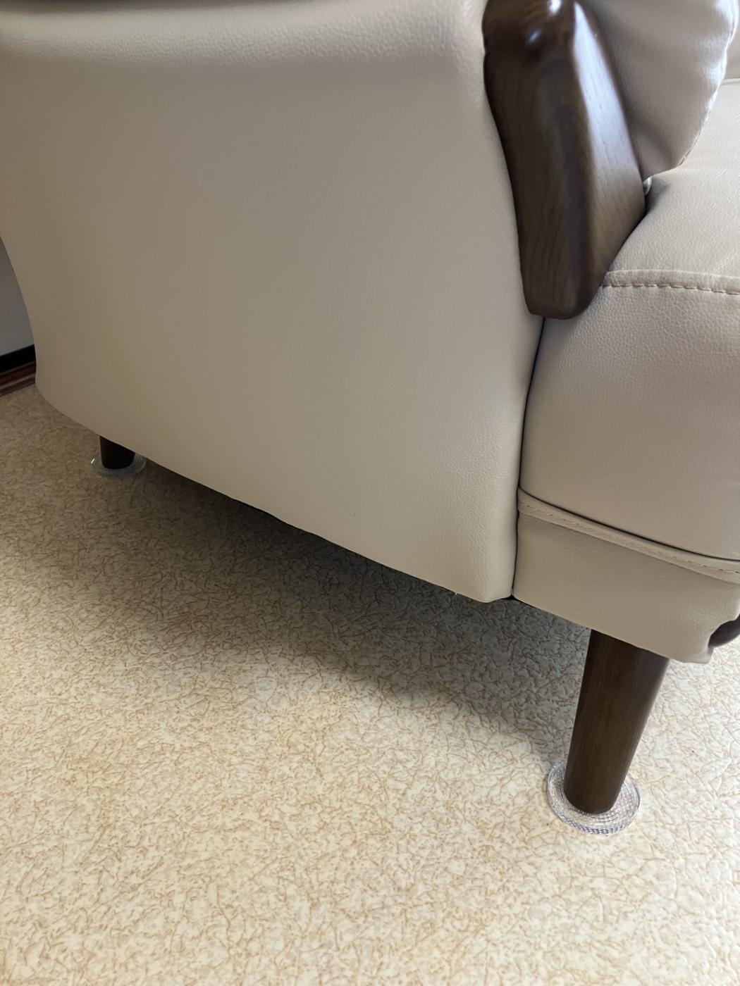 我が家はソファがズレてしまったり床が傷つくのを恐れて、ソファの脚をつけなかったんです。