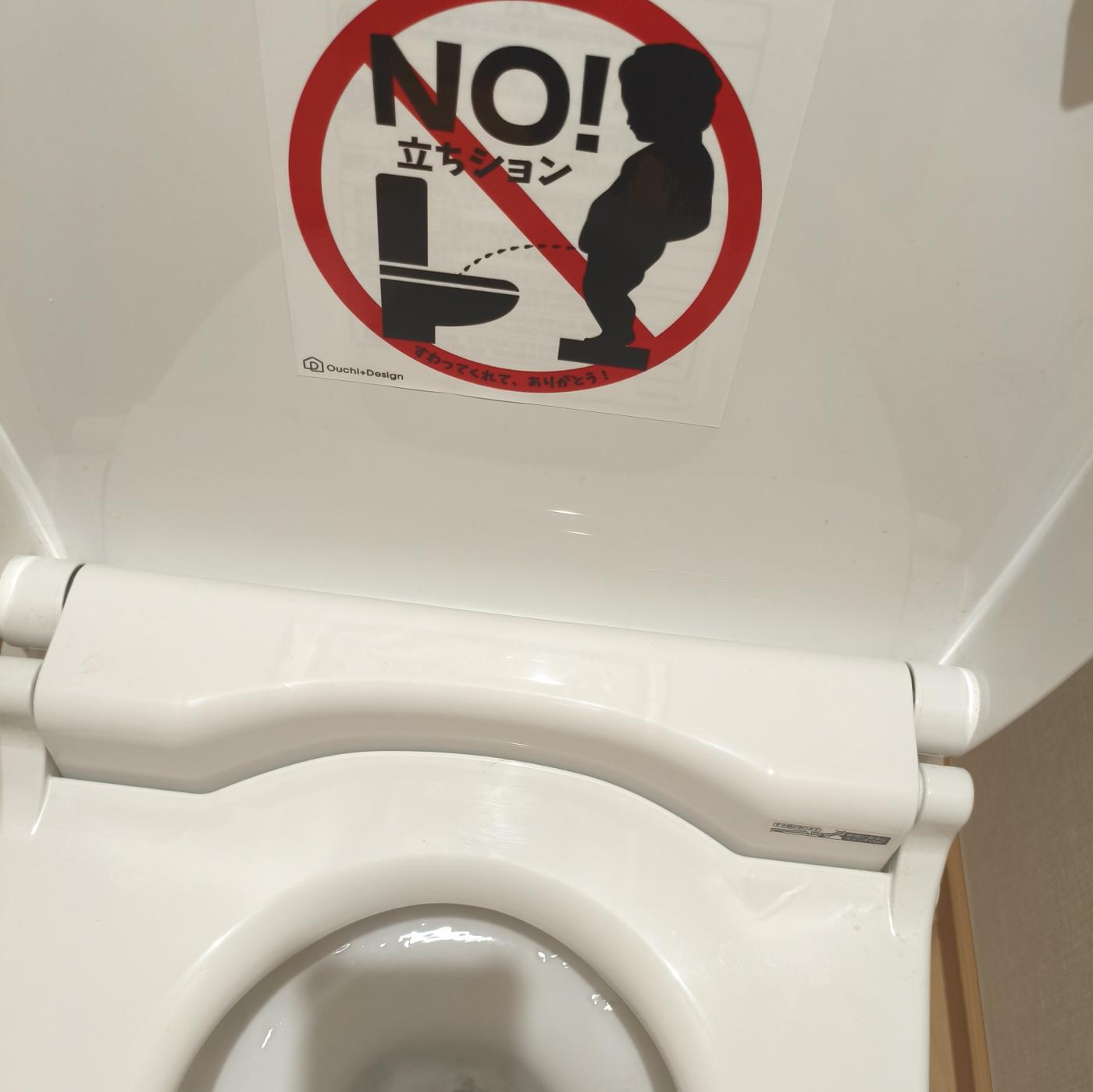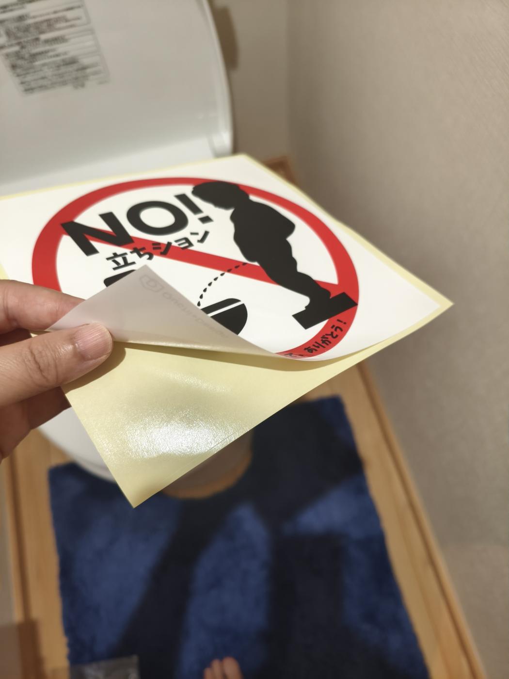 トイレの蓋に貼っておけば立ちションしようと思った人に分かりやすくだめだよ〜っ!をお知らせできますね!