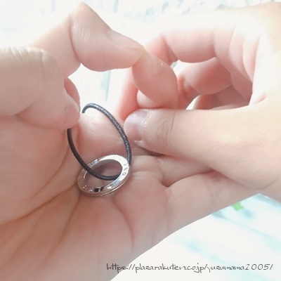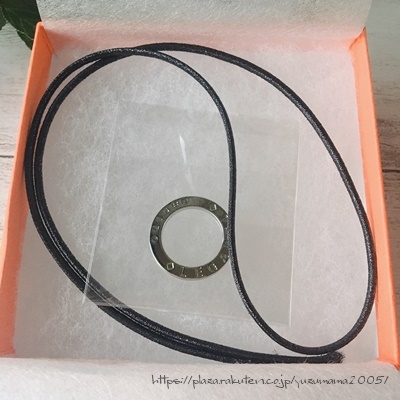 オレンジ色のしっかりした箱に入ったワンランク上のアクセサリー♪ラッピングしたら素敵なプレゼントになりそうです。私が試したのはシルバーのリングタイプ。この他にペンダントタイプもありますが、どちらもシンプルで私好みです。今回ついていたのはゴム紐だったんですが、高級合皮製ひもも選べますし、手持ちのものと組み合わせるのもいいですね。