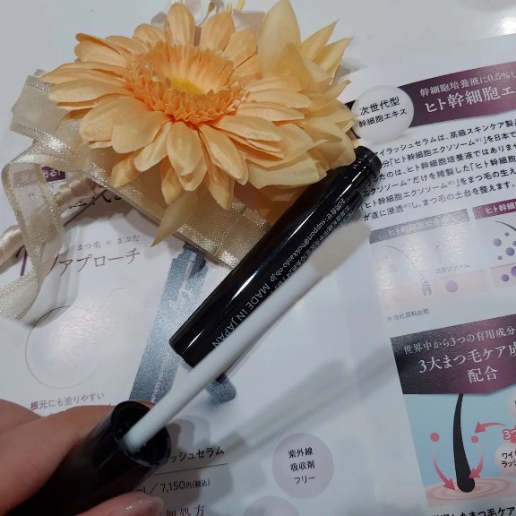 早速中身を使ってみると、無臭でいい感じです。一緒に同封されていた説明書には使い方がしっかり書かれていてとても親切だと思いました。私の場合すぐにのばしたいとかではなく、今ある自まつ毛を大事にしたいということが希望なので、毎日の日課として夜お風呂上りにスキンケアと一緒に使っています。抜けるまつ毛が少しでも減ると良いと思っています。目への負担も感じることなく、塗っても軽いタッチなのでとても良い商品だと思いました。使い続けていくことで、効果が表れてくると思うので、それまでしっかり使って行きたいと思います。