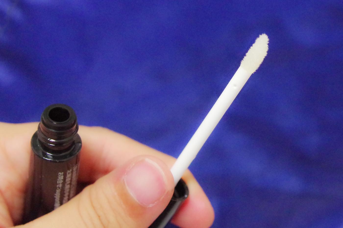 容器をよく振り、容器の口でしっかりと筆をしごき、美容液の量を調節してください。