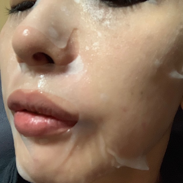 ってことで、顔に残っている美容液は軽くパッティングしてさらに肌に馴染ませ、シートに残っている美容液は首からデコルテにかけて塗りこむ感じで馴染ませてみました。