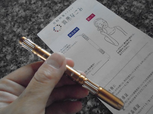 この綺麗な棒!! 花粉対策スティックなんです!! 結構いいお値段!!W(`0`)W でも、一瞬高級なボールペ...