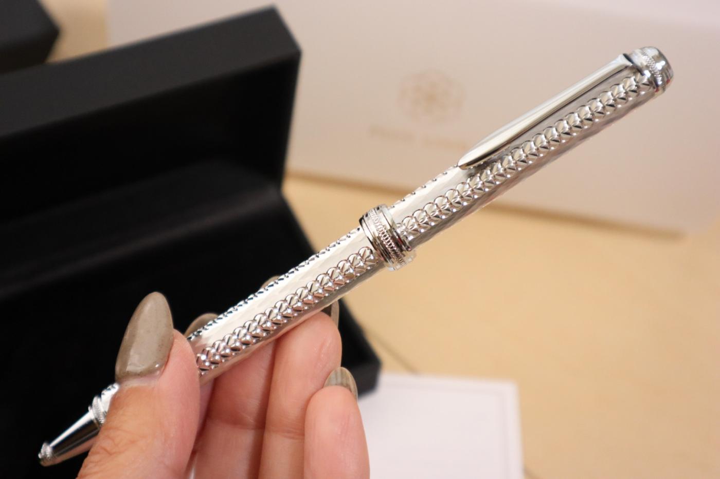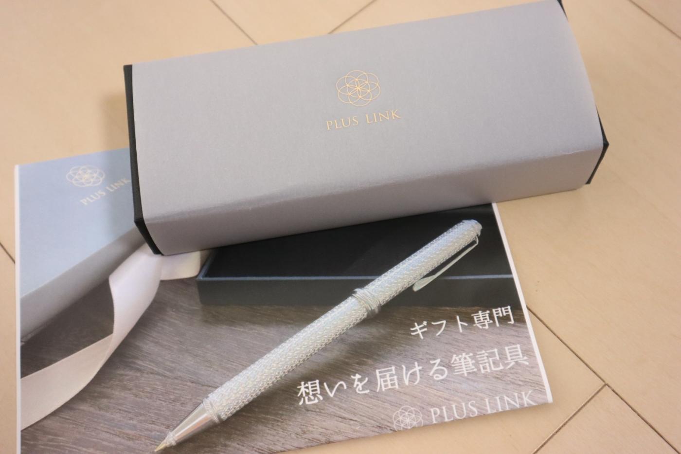 がんばったね。お疲れさま。ありがとう。ずっと応援しているよ。あなたは今誰に、どんな気持ちをいだいていますか?大切な人への大切な気持ちはちゃんと届けたいから。そんな想いで作られたティアラさんの「PLUS LINK」は昔から人々に愛されてきた文様やモチーフになぞらえて、贈る方の想いをデザインにのせたギフト専門筆記具です。今回私は長女の高校受験の合格した時にプレゼントしてあげたいと思い、こちらの合格祝い【月桂樹】を選びました(^^)まだあけてもないシンプルで上品なデザインのギフト包装にも驚かされました!こちらのボールペンお値段1本14850円。ひとつひとつ切削する熟練の技術を見、ひとつひとつ丁寧に模様が描かれているのに対しこの価格でいいの?と思いました。ほんとにひとつひとつ。ずれることもなく粗い箇所もなくすごいです。手づくりだから、できること。8つの模様。それぞれの物語。今回私が選んだ合格祝い。「勝利」「栄光」「輝かしい未来」という意味を持ったモチーフが『月桂樹』です。努力を重ねて勝ち取った合格へのお祝いとともに、希望に満ちた明るい未来への邁進に願いを込めたデザインなんです!綺麗でしょ?可愛くないですか?プレゼントされたら嬉しいですよ、喜びますよ(^^)合格祝いの他にも、卒業祝い、就職祝い、成人祝い、還暦祝い、古希祝い、退職祝い、感動のギフト。用途に合わせ選べます。名前入れ彫刻サービスもあります!高品質。ペン軸を回転させてペン先を出す「ツイスト式」ノック音がしないので、ビジネスシーンにも最適です。マイルドな書き心地の油性インク、0.7mm芯を使用しています。ほどよい重さと手馴染みのよい太さは持ちやすく、長時間の使用でも疲れにくい設計です。写真で見るよりも実際はもっとキラキラしています!一生傍にいる宝物になりそう☆五つ星どころか七つ星です★★★★★★★