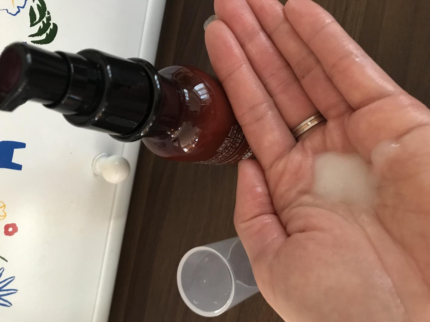 手のひらにプッシュして出してみると、白くやわらかくスルッとしたテクスチャーの乳液の様な感じで、つけ心地も非常に気持ち良く、肌に浸透していくのを感じました。そしてもっちりとやわらかいお肌になった気がします。