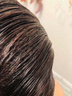 シャンプーの後に水気を切ってトリートメントをつけます。