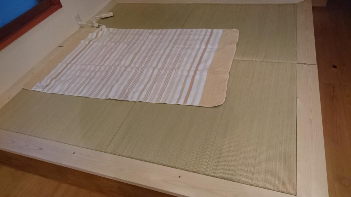 先日、2畳という小さな小上がりをちょうど作成しまして、そして北海道は大分肌寒くなって参りましたので、その小上がりに敷いてみることにしました。