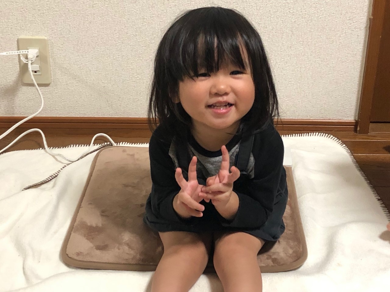 質感のいいもの大好きな娘は、ふんわりやわらかな電気マットをひたすら触っています。手でさわさわして、毛を逆立てたり戻したり楽しんでいます。それほど質感が気持ちいいです。