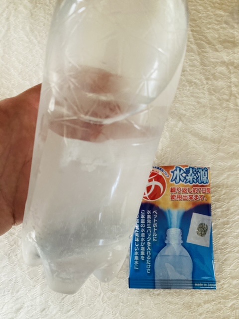 水素発生パックは、ペットボトル用に開発されたパックで、ペットボトルに入れる水は、普通の水道水でいいようです、もちろん市販の水でもいいです、手軽にペットボトルに水を入れて水素水を楽しめます