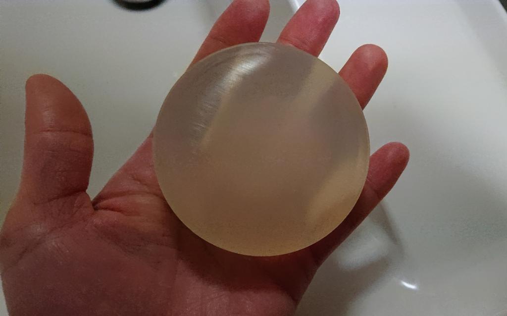 封を開けると真ん丸で半透明の石鹸が出てきます。