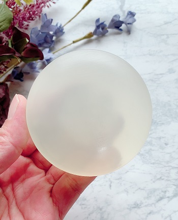半透明でどっしりと重みのある石けんで、手にもってすぐに、華やかなローズの香りがしました。優しく、心身ともに癒される香りです。