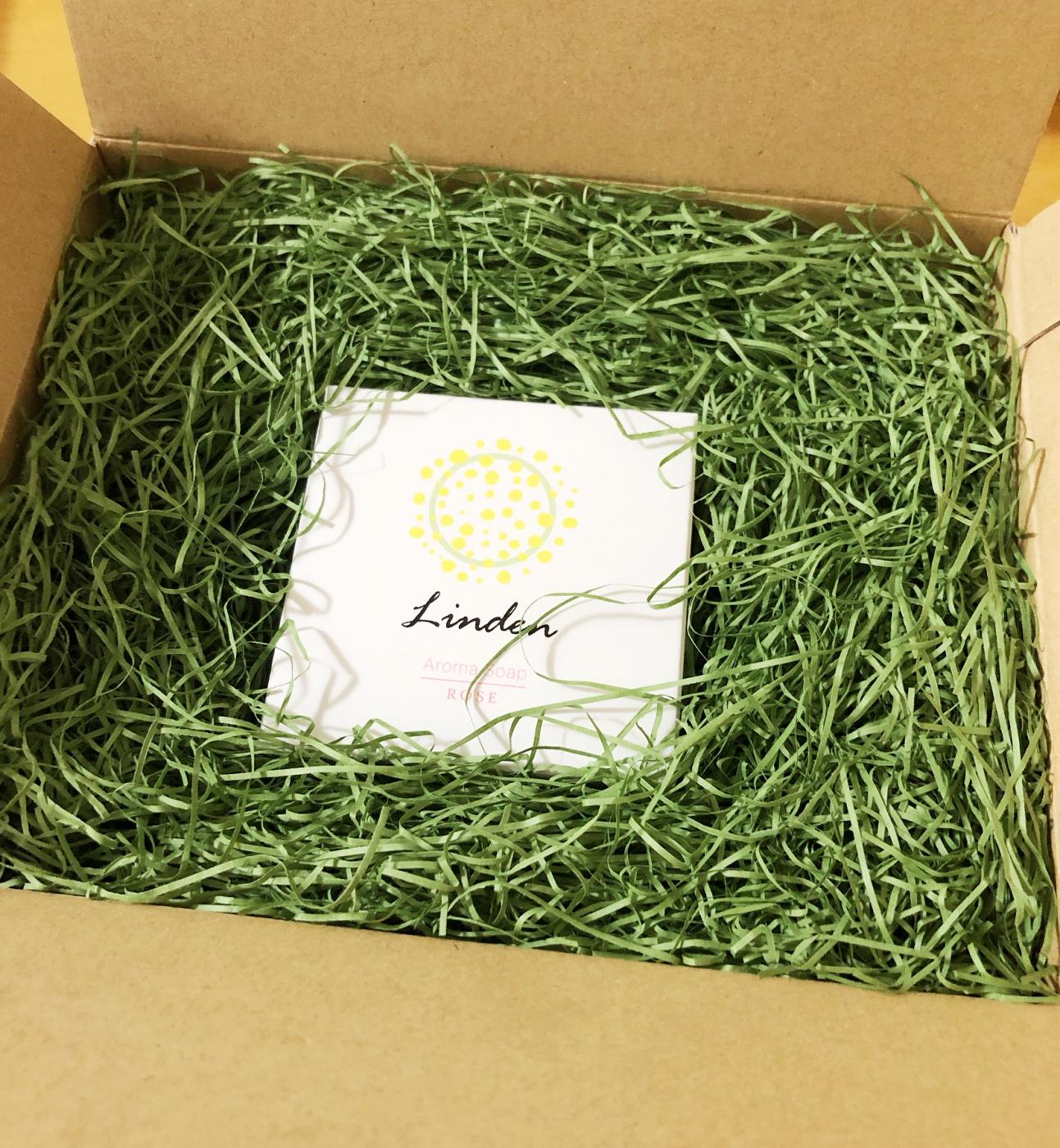 ダンボールを開けて驚き、芝生に包まれたアロマソープ!