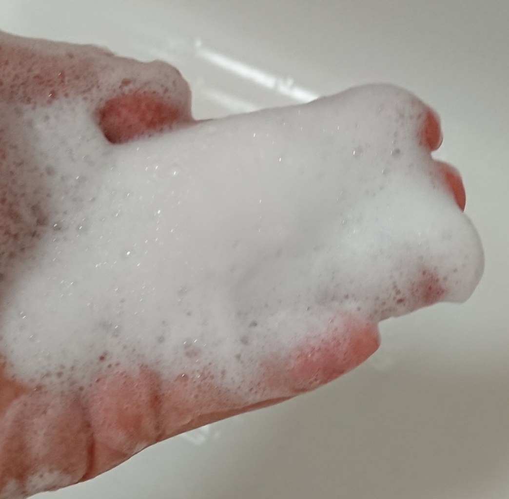 泡立てネットを使うと、弾力のあるもちもちとした泡ができました。