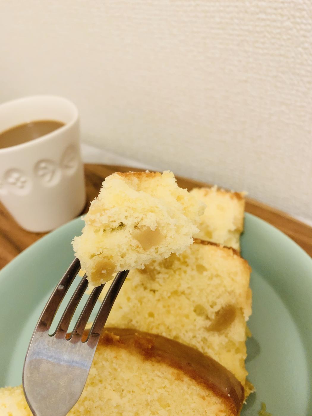 やさしくて自然な甘さで、新しい組み合わせのパウンドケーキなのにどこか素朴で懐かしい感じがします。