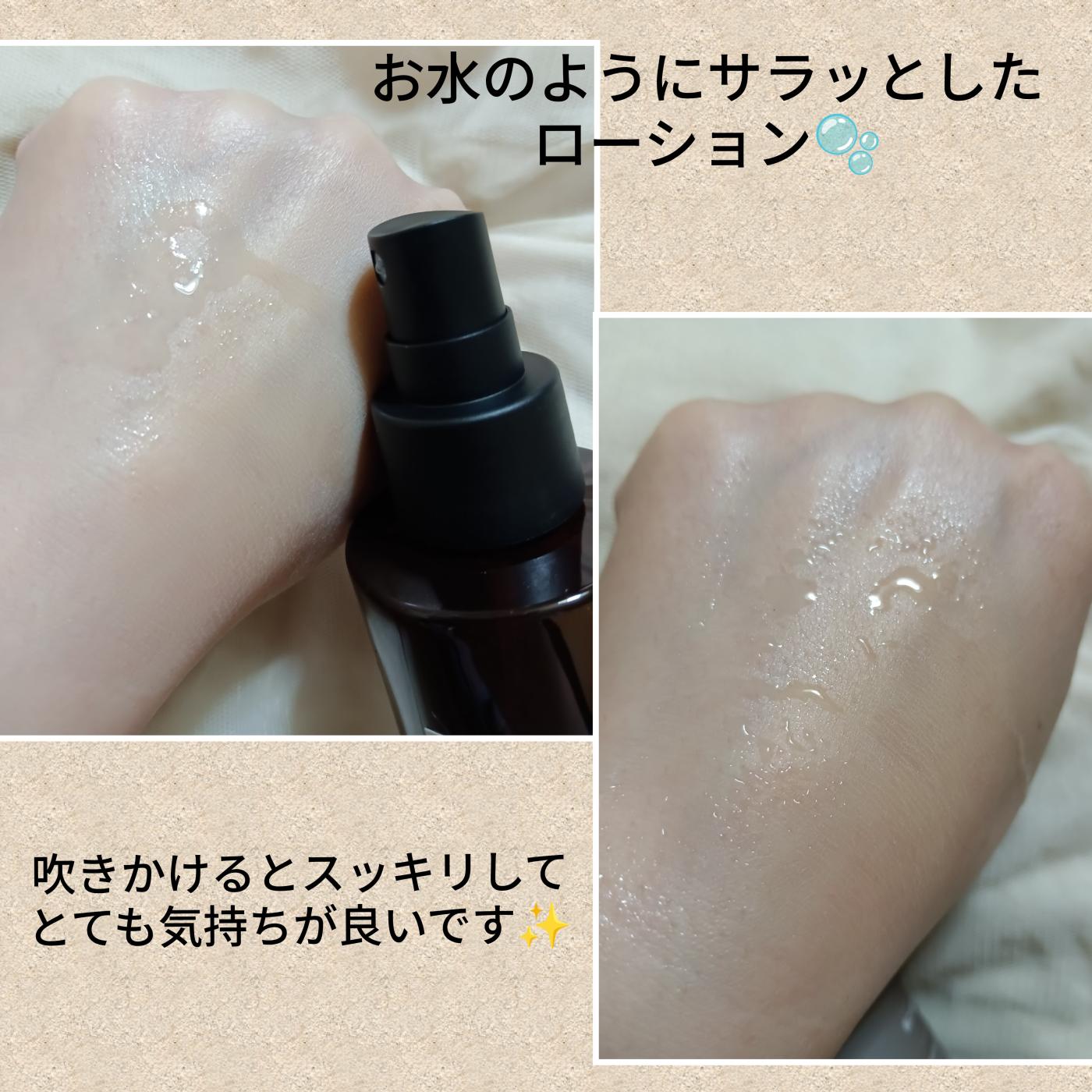 お風呂上がりやエアコンの乾燥で肌にかゆみを感じた時にすぐにシュッと肌にふきかけていますが、お水のようにサラッとしたローションで吹きかけるとスッキリしてとても気持ちが良いです✨