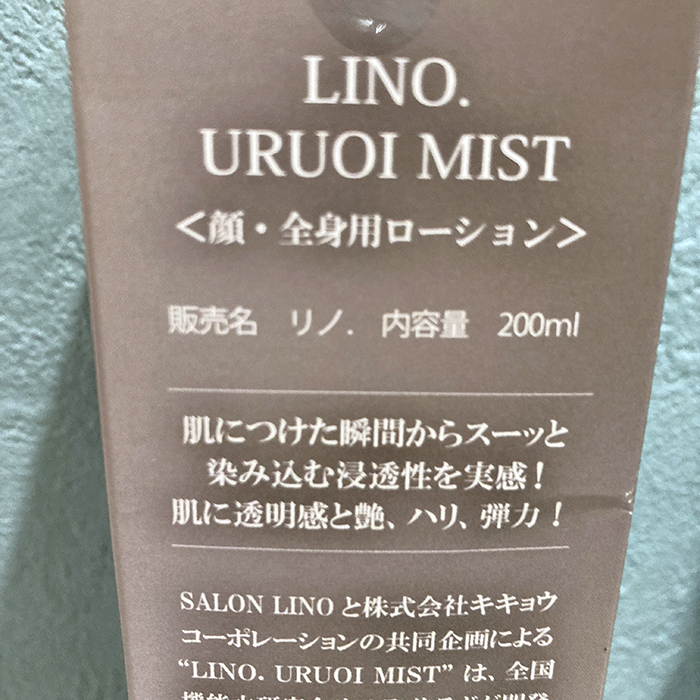 【顔・全身用ローション】LINO. URUOI MIST についてのレビューです。 「LINO. URUOI MIST」は、自...