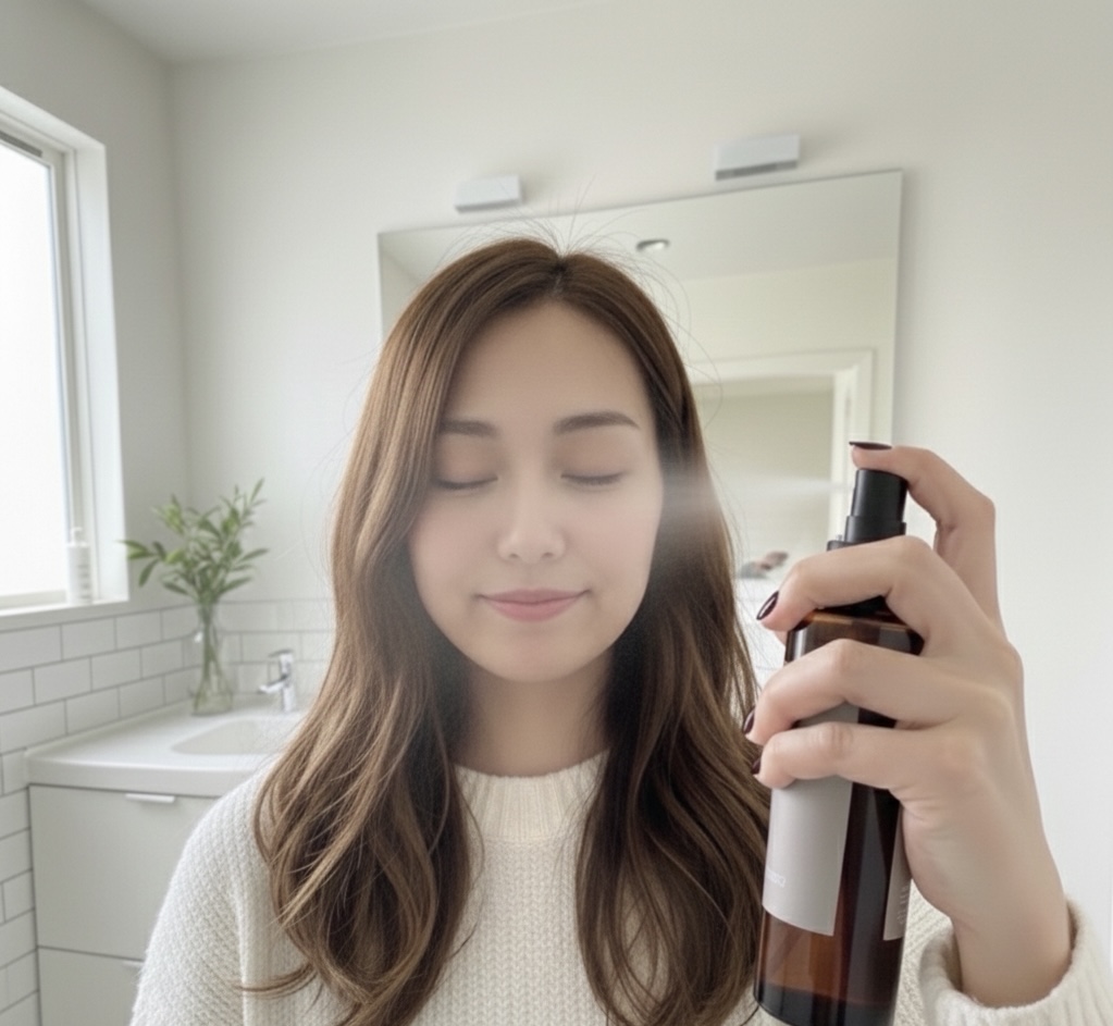 朝はどうしても時間がなく、化粧水を手に取って丁寧にパッティングする余裕がない日も多いのですが、このミストはシュッとプッシュするだけで手軽に使えるのがとても便利です。