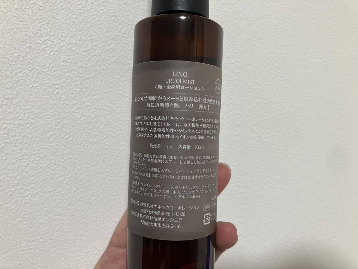 【顔・全身用ローション】LINO. URUOI MISTを使用してみました。 顔にも身体にも使える全身用のロー...
