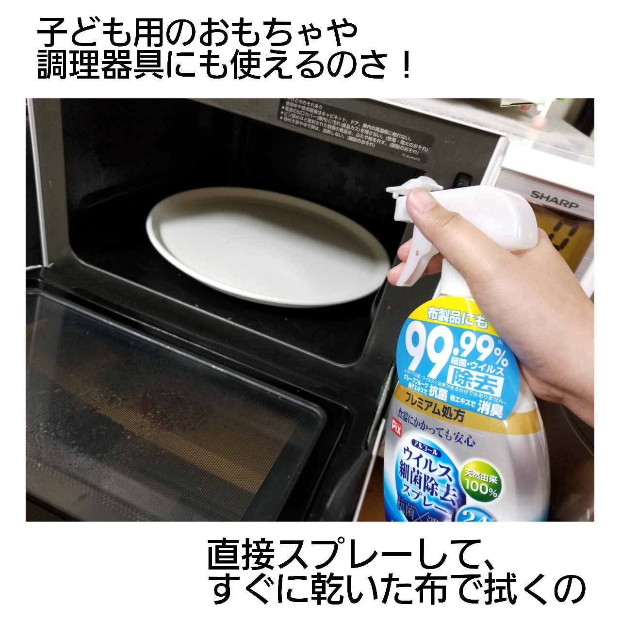 赤ちゃんがいる家庭でも安心して強力除菌出来る✨Pixアルコールウイルス細菌除去スプレー